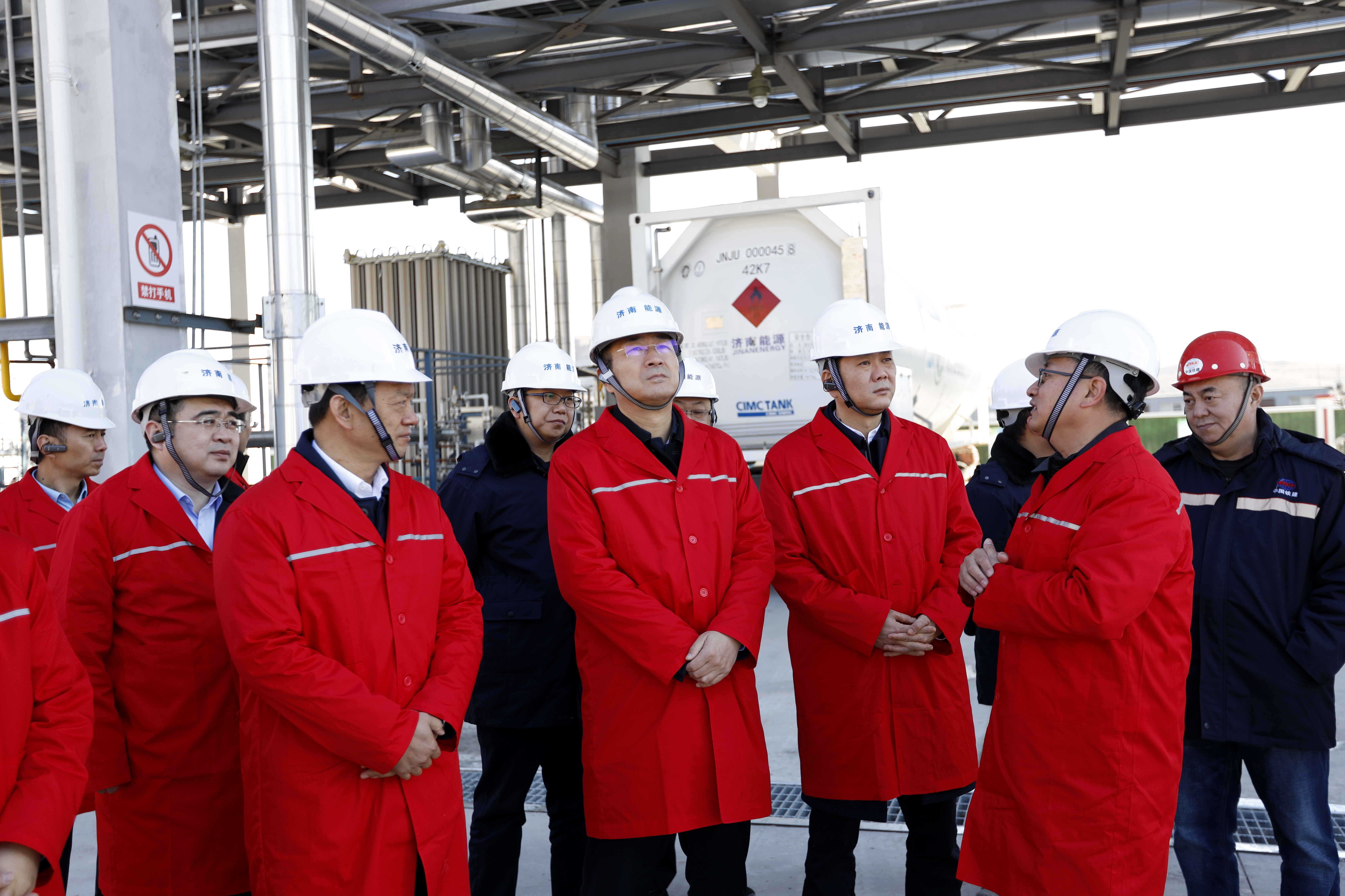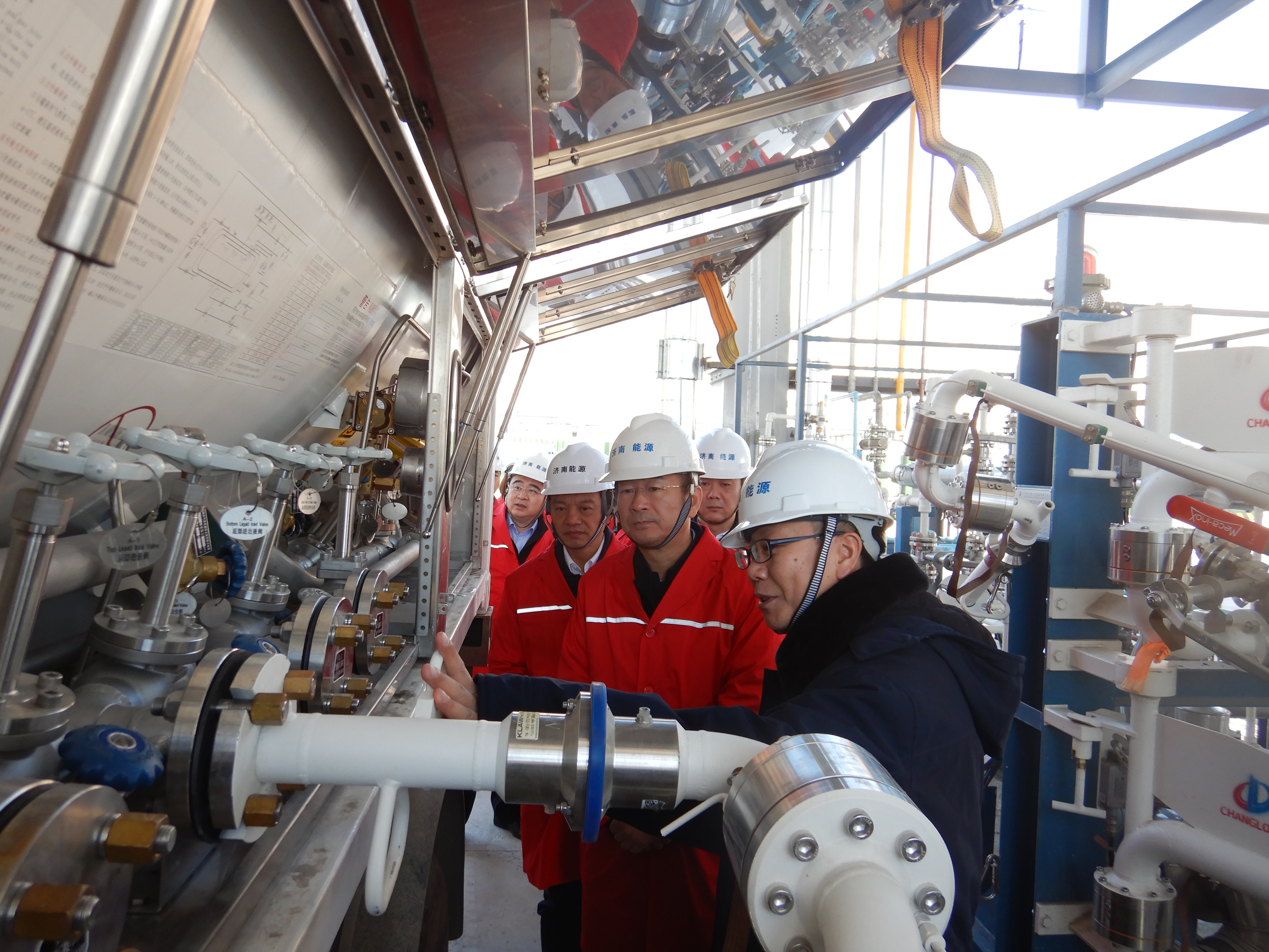 在LNG調(diào)峰儲配站項(xiàng)目建設(shè)現(xiàn)場,欒健聽取了該項(xiàng)目的基本介紹,并對該項(xiàng)目的工藝設(shè)計(jì)、安全運(yùn)行、施工進(jìn)度、急需協(xié)調(diào)解決的問題、二期建設(shè)計(jì)劃等方面情況進(jìn)行深入了解。一期項(xiàng)目于2018年12月28日開工建設(shè),今年6月率先在全省完成政府儲氣設(shè)施建設(shè)任務(wù)?,F(xiàn)已完成儲罐封罐、壓力容器及壓力管道備案、壓力表及安全閥檢驗(yàn)、單機(jī)調(diào)試等工作,正在進(jìn)行土建收尾,DCS、SIS聯(lián)動調(diào)試,自控、電動閥門調(diào)試,場地清理等工作。11月20日已成功通過空氮站壓縮空氣干燥儲罐及相關(guān)管道,儲罐露點(diǎn)已達(dá)到-24.7,計(jì)劃近期使用氮?dú)膺M(jìn)行置換干燥,干燥完成后開展儲罐預(yù)冷工作,具備進(jìn)液條件。二期項(xiàng)目于2019年12月30日開工建設(shè),正在進(jìn)行新征土地二次公示準(zhǔn)備、地質(zhì)勘察、儲罐基礎(chǔ)施工、消防水罐焊接、主要設(shè)備材料采購、場站邊坡維護(hù)前期排險(xiǎn)等工作。按照魯發(fā)改能源〔2020〕440號文件要求,力爭2021年底完成儲氣調(diào)峰設(shè)施建設(shè)任務(wù)。