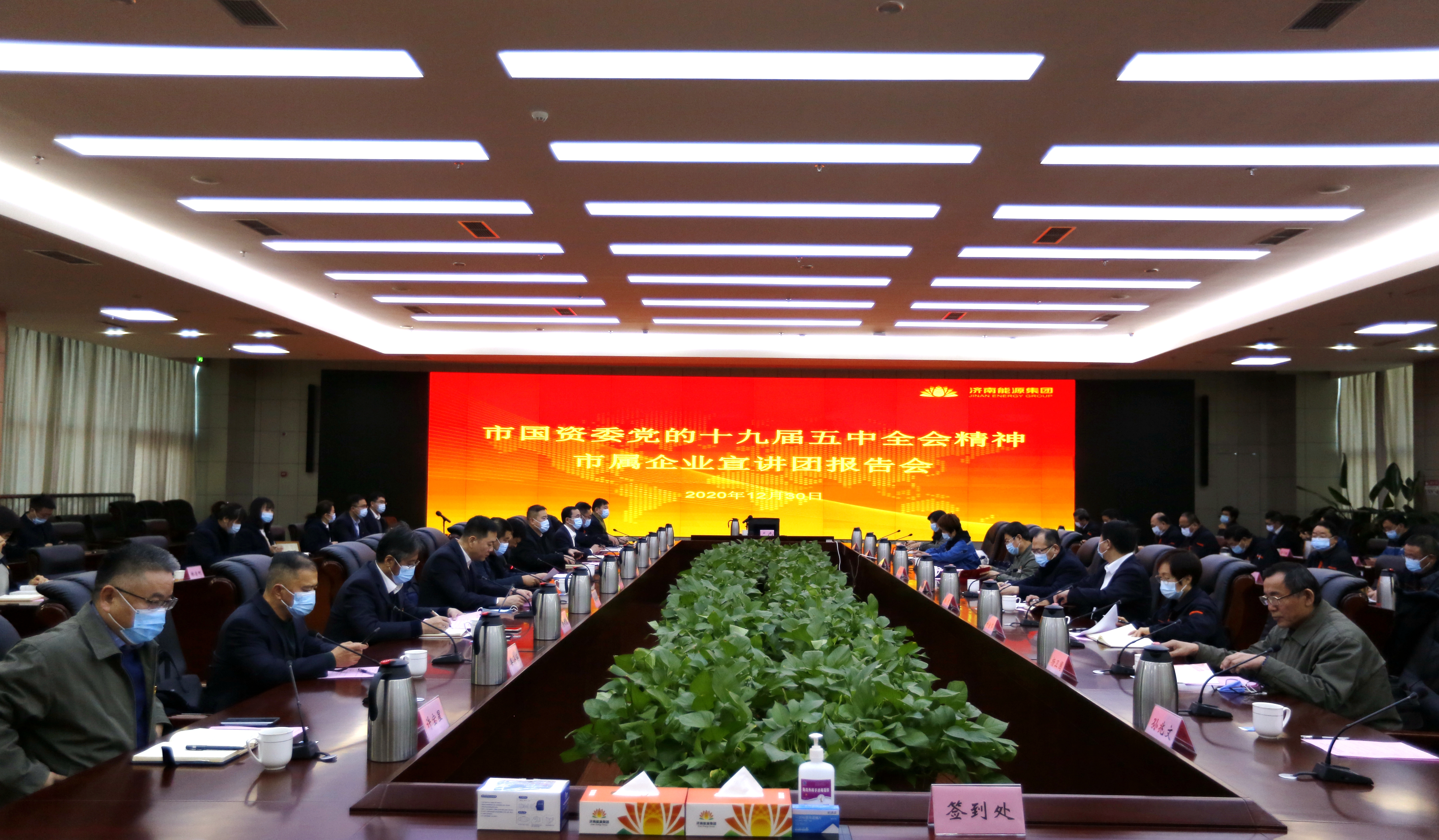 12月30日上午,市國資委黨委委員、市紀(jì)委監(jiān)委駐市國資委紀(jì)檢監(jiān)察組組長蘆青到濟(jì)南能源集團(tuán)宣講黨的十九屆五中全會(huì)精神。報(bào)告會(huì)由濟(jì)南能源集團(tuán)黨委書記、董事長潘世英主持。市紀(jì)委監(jiān)委駐市國資委紀(jì)檢監(jiān)察組副組長劉衛(wèi)東,市紀(jì)委監(jiān)委駐市國資委紀(jì)檢監(jiān)察組副處長孟祥彬,能源集團(tuán)領(lǐng)導(dǎo)班子成員,所屬各企業(yè)領(lǐng)導(dǎo)班子成員、黨群部門負(fù)責(zé)人和集團(tuán)機(jī)關(guān)黨支部全體黨員約60余人參加宣講會(huì)。
