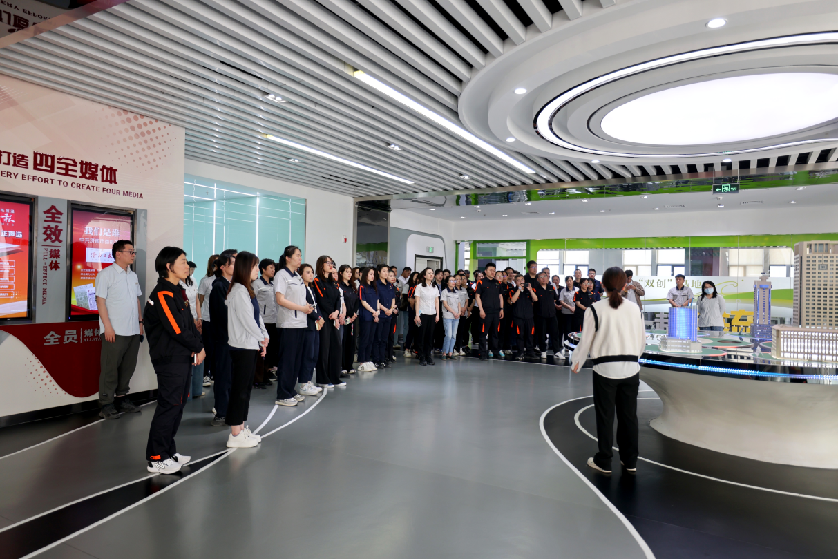4月26日下午,參加培訓人員一同前往濟南日報報業(yè)集團。在融媒體中心實地參觀了多功能演播區(qū)、指揮調度區(qū)、新媒體辦公區(qū)、輿情監(jiān)控區(qū)以及5G新媒體實驗室等功能區(qū)域;在濟南國際傳播中心,近距離感受濟南國際傳播矩陣,了解高新科技驅動媒體融合與傳播模式的創(chuàng)新發(fā)展。