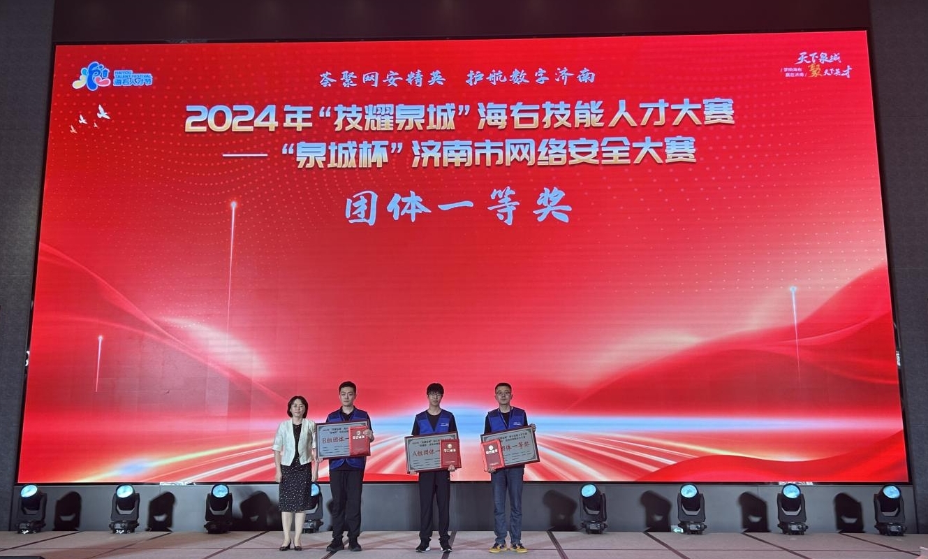 7月11日,2024年“技耀泉城”海右技能人才大賽—“泉城杯”濟(jì)南市網(wǎng)絡(luò)安全大賽成功落下帷幕。來自全市黨政機(jī)關(guān)、企事業(yè)單位103支隊(duì)伍、302名選手參加本次大賽。經(jīng)過激烈角逐,濟(jì)南能源集團(tuán)隊(duì)獲B組團(tuán)體一等獎,兩名參賽選手獲得個人一等獎、個人二等獎獎項(xiàng)。