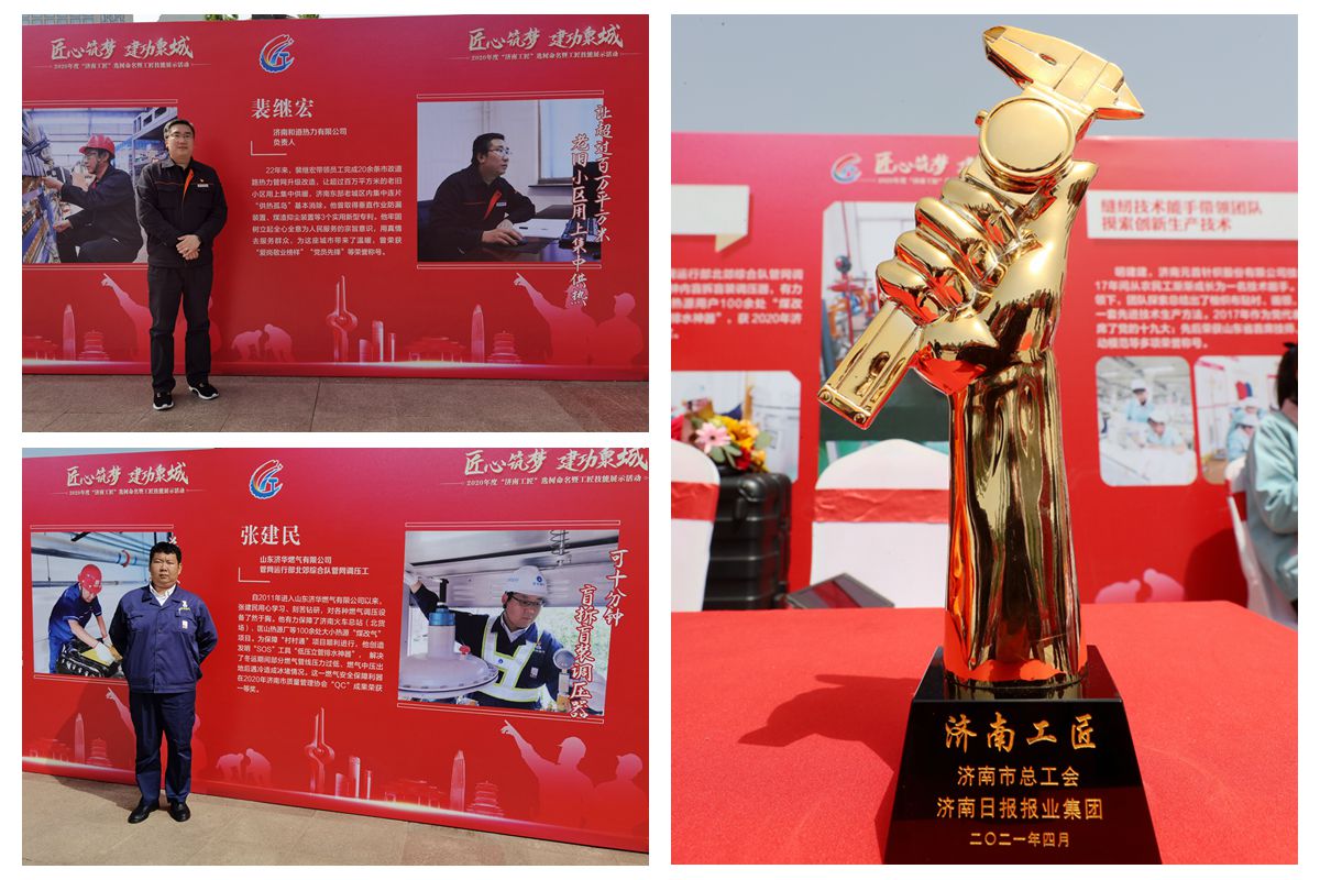 濟南能源集團兩名職工獲此殊榮。濟南熱力集團和道熱力有限公司裴繼宏獲得“匠法傳承”組濟南工匠榮譽稱號,山東濟華燃氣有限公司張建民獲得“匠品獨新”組濟南工匠榮譽稱號。