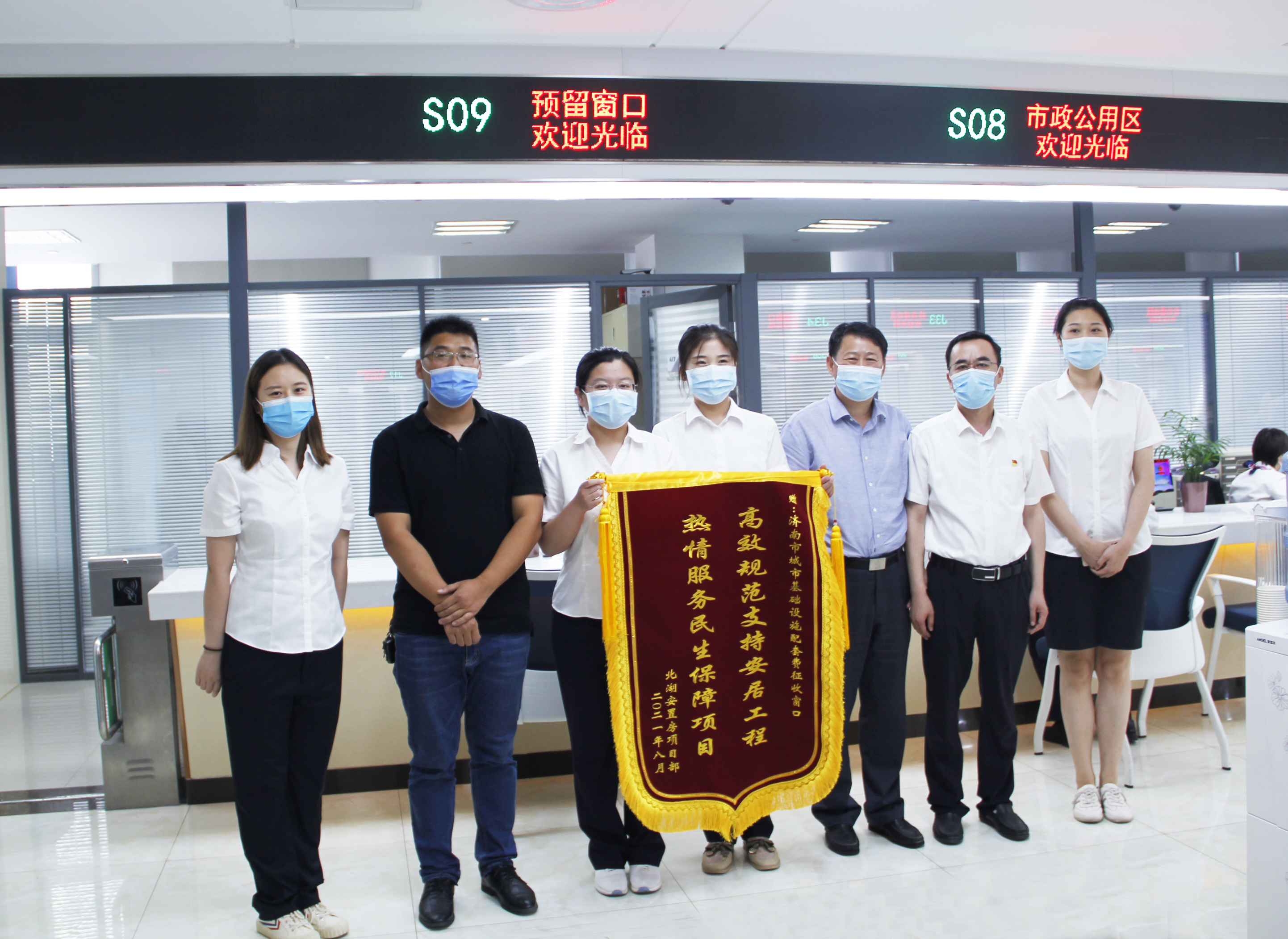 王維青在窗口與用戶進行交流,并與市住建局財務(wù)審計處處長張朝峰一起接受用戶贈送的錦旗。他表示,窗口工作人員要牢記職責(zé)、珍惜榮譽,換位思考,用心用情用力工作,把用戶的小事當(dāng)作自己的大事,爭取一次辦成、一次辦好,讓更多泉城百姓共享“一張網(wǎng)”改革紅利。大家工作生活中遇到的困難就是我們的困難,集團會竭盡全力為大家排憂解難,當(dāng)好娘家人、服務(wù)員,共同建設(shè)溫心能源、溫馨工會。