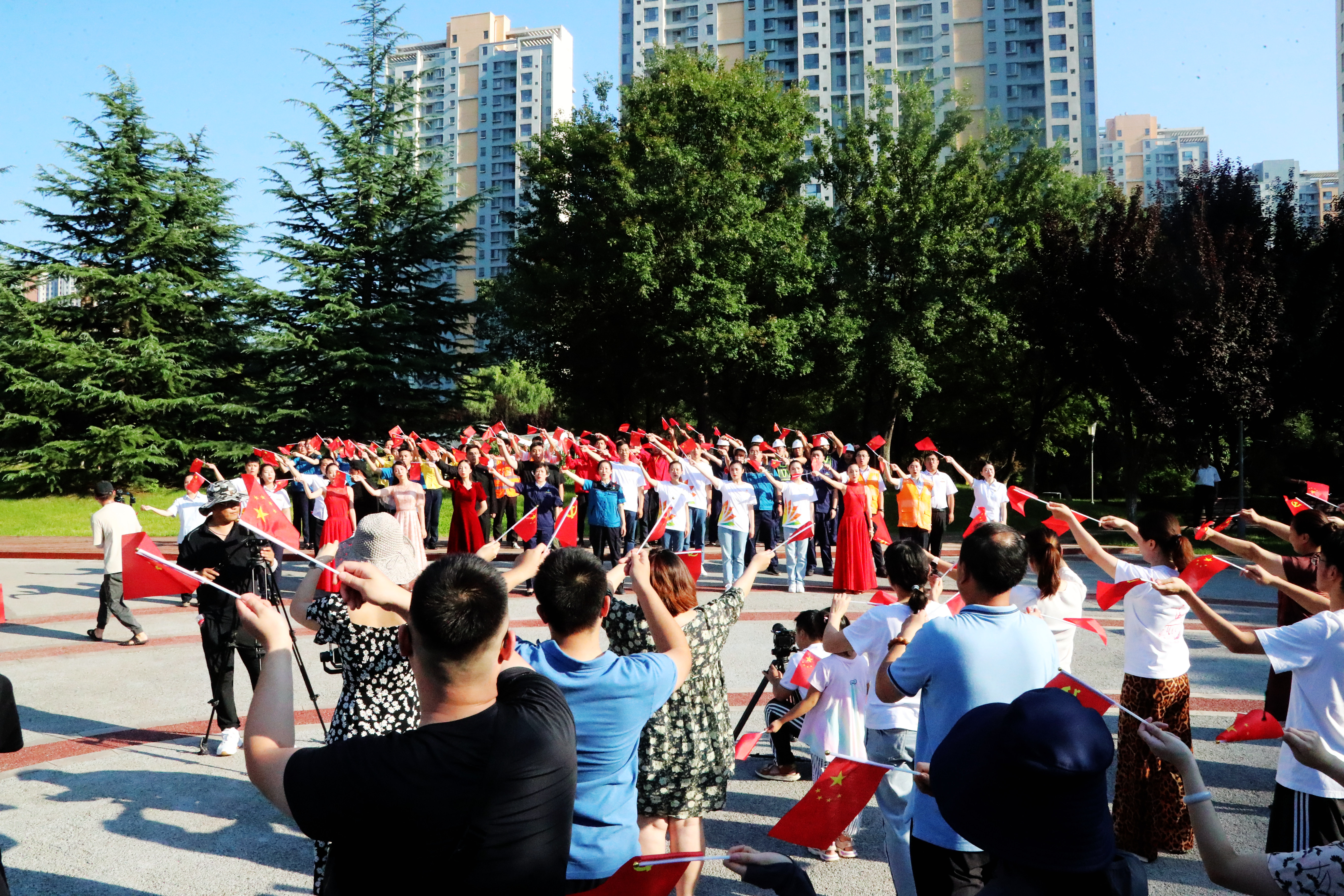 7月24日,在魯能領(lǐng)秀城中央公園,濟南能源集團所屬山東濟華、濟南港華兩家燃氣企業(yè)攜手濟南熱電集團、濟南熱力集團、濟南能投集團、濟南能源工程集團等單位的30余名表演人員整齊列陣,在琴瑟和鳴中傳遞紅色精神,讓能源人的歌聲響徹泉城上空。