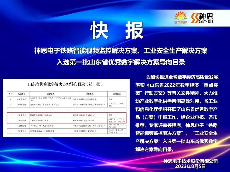 【能源快報】神思電子入選山東省優(yōu)秀數(shù)字解決方案導(dǎo)向目錄(第一批)