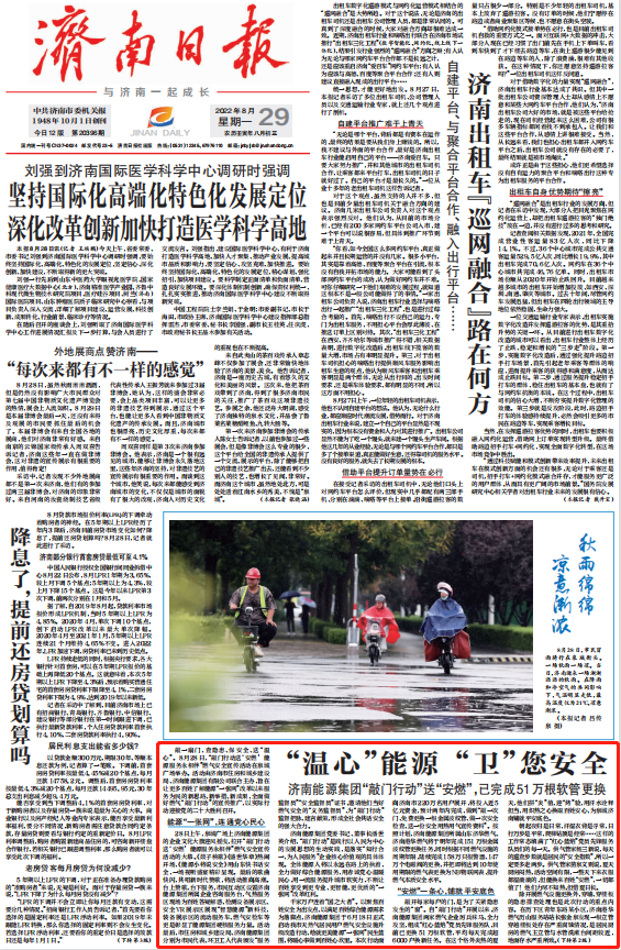 “溫心”能源 “衛(wèi)”您安全 濟(jì)南能源集團(tuán)“敲門行動(dòng)”送“安燃”,已完成51萬(wàn)根軟管更換
