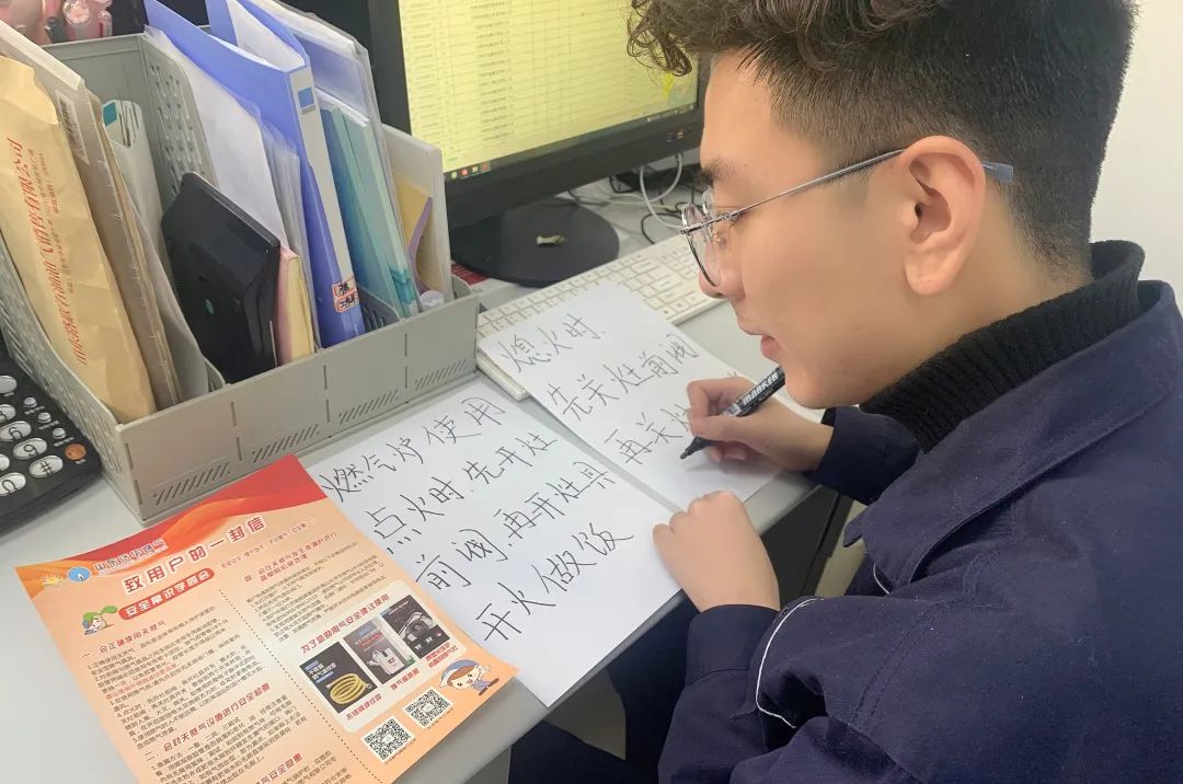 得知此情況后,李浩冉趕緊返回辦公室,用馬克筆寫下“大版”灶具使用操作流程,又一路小跑來到老人家中。他將這份“特殊”的“大版”灶具使用操作流程交到老人手中,并將自己的電話號碼留給老人。“奶奶,供氣、供熱常識我都懂一些?,F(xiàn)在能源集團是氣熱聯(lián)動服務,我不光是您的供氣管家,還是您的供暖管家。如果您遇到什么氣、熱問題,都可以隨時給我打電話。如果生活上還有其他需要幫助的,也可以隨時找我。”