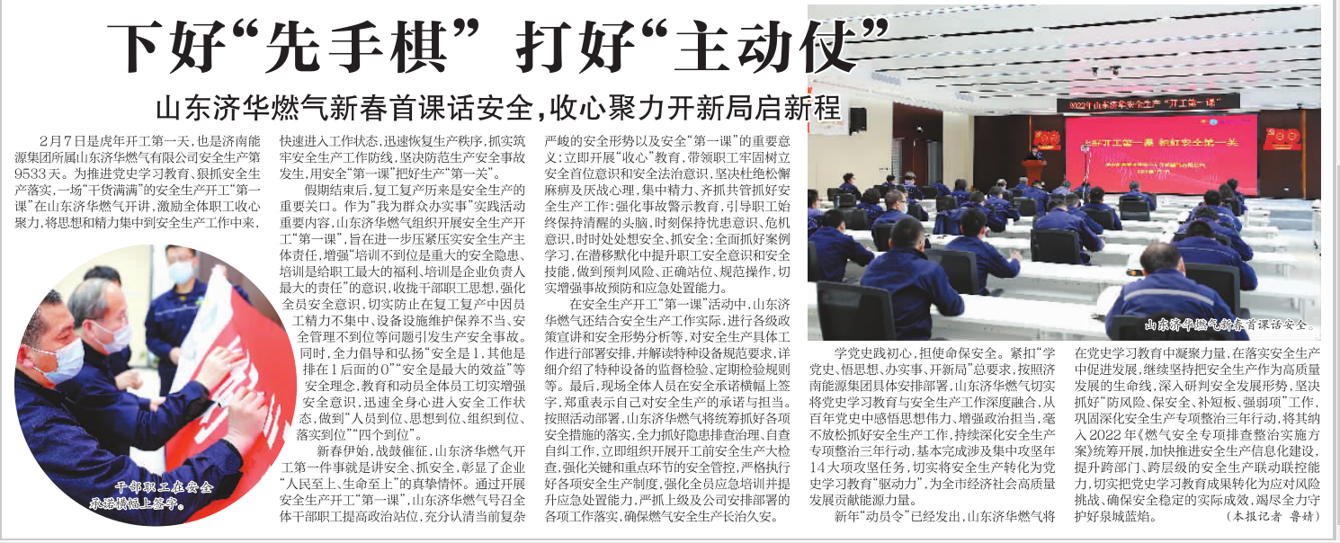 【濟南日報】下好“先手棋”打好“主動仗” 山東濟華燃氣新春首課話安全,收心聚力開新局啟新程