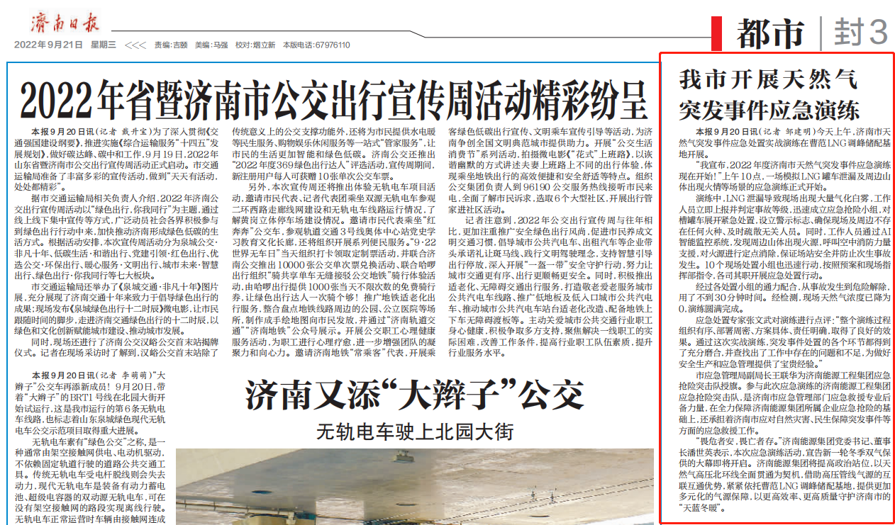 【濟南日報】我市開展天然氣突發(fā)事件應(yīng)急演練