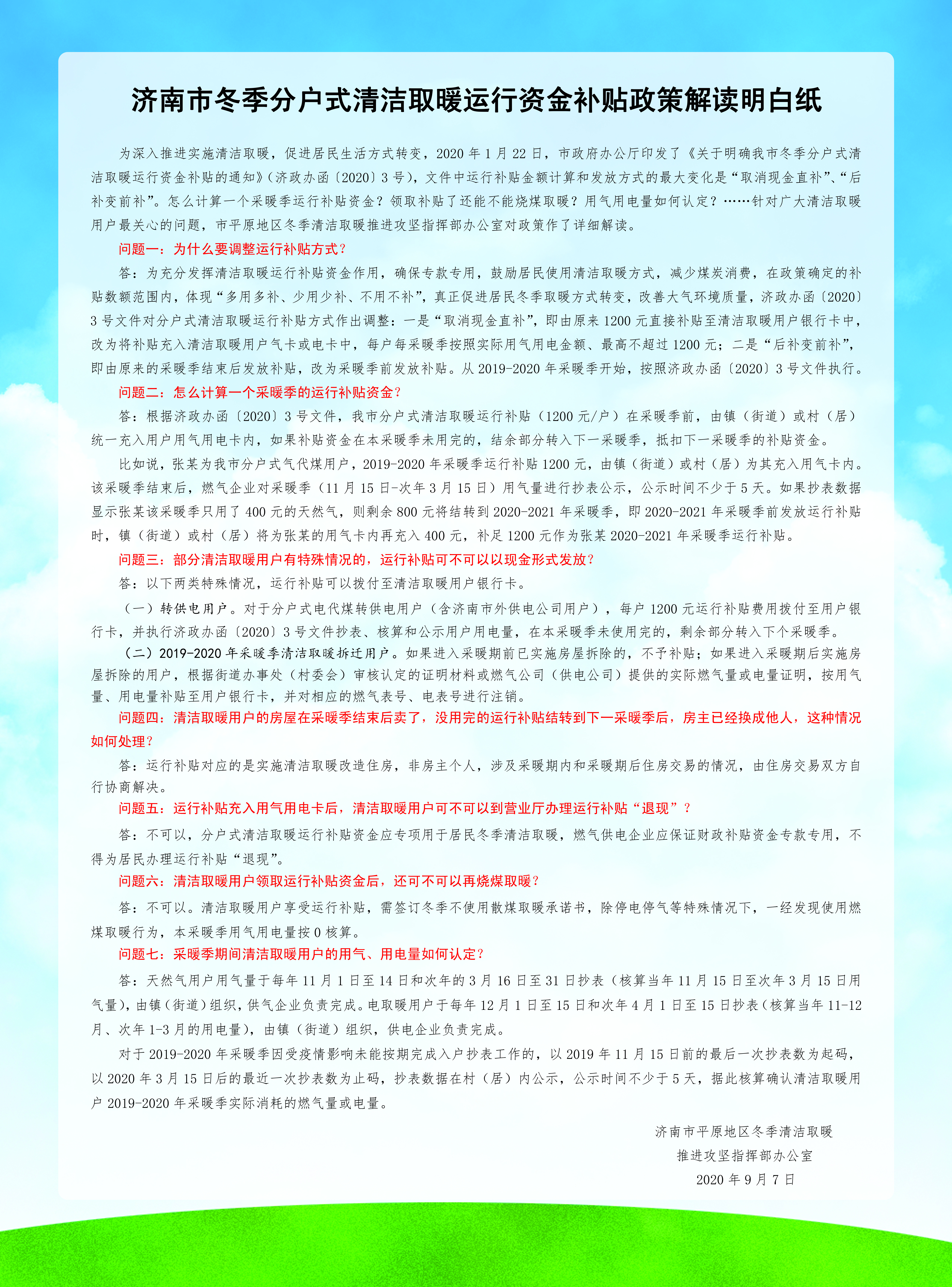 濟南市冬季分戶式清潔取暖運行資金補貼政策解讀明白紙