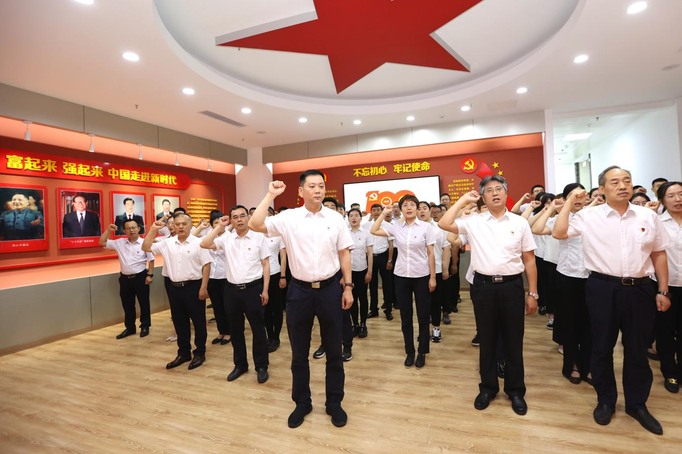 在即將迎來中國共產(chǎn)黨成立100周年的光輝時刻,6月24日上午,濟南能源集團隆重舉行2021年上半年新發(fā)展黨員入黨宣誓活動。濟南能源集團黨委書記、董事長潘世英參加活動并帶領53名新發(fā)展黨員宣誓,黨委副書記王維青主持儀式,黨委班子成員一起重溫入黨誓詞。