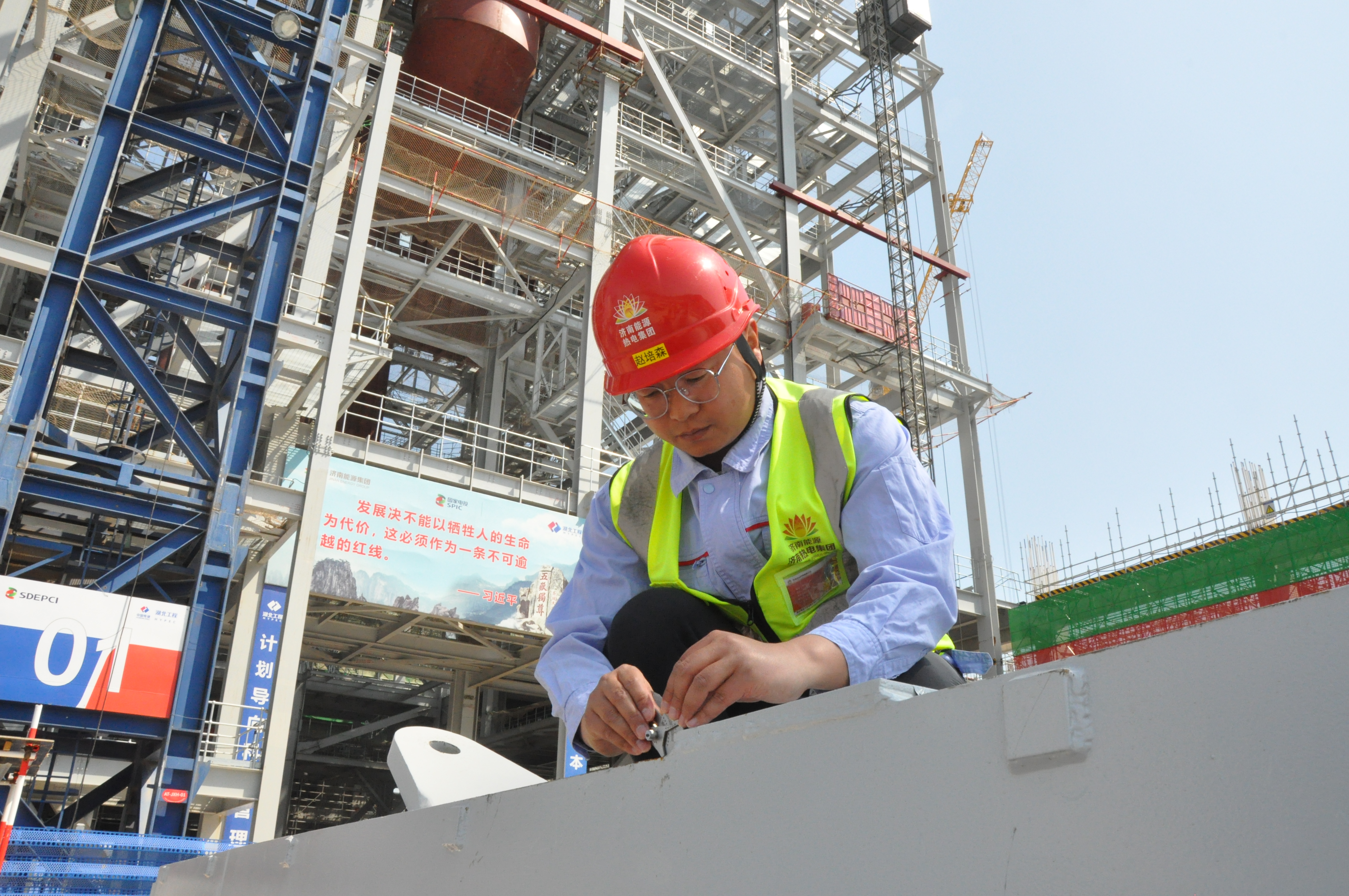 五一勞動節(jié)期間,濟南熱電先進燃煤機組現(xiàn)場不停工,在鍋爐施工區(qū)域,可以看到一個忙碌的身影,時而檢查設備,時而看圖紙、做筆記,他就是濟南能源集團所屬熱電集團2×66萬千瓦先進燃煤機組供熱項目鍋爐專業(yè)技術專工趙培森,主要負責項目鍋爐系統(tǒng)的建設工作,作為一名新時代的能源青年趙培森腳踏實地,兢兢業(yè)業(yè),用實際行動詮釋著“知行合一,為人民服務”的企業(yè)核心價值觀。
